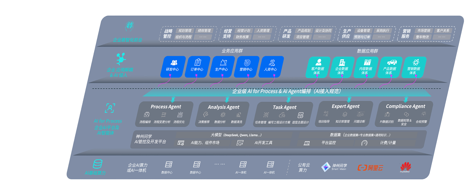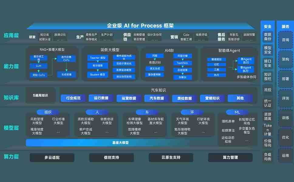 端到端的一站式AI工作空间深度融合了从企业战略规划到日常经营的全流程业务板块,,定向解决车企内部领域多、、部门多、、、链条长、、场景碎片化等难题,,,支持车企快速构建以AI为核心的生产力写作体系,,,实现任务执行与AI能力的无缝集成与交互